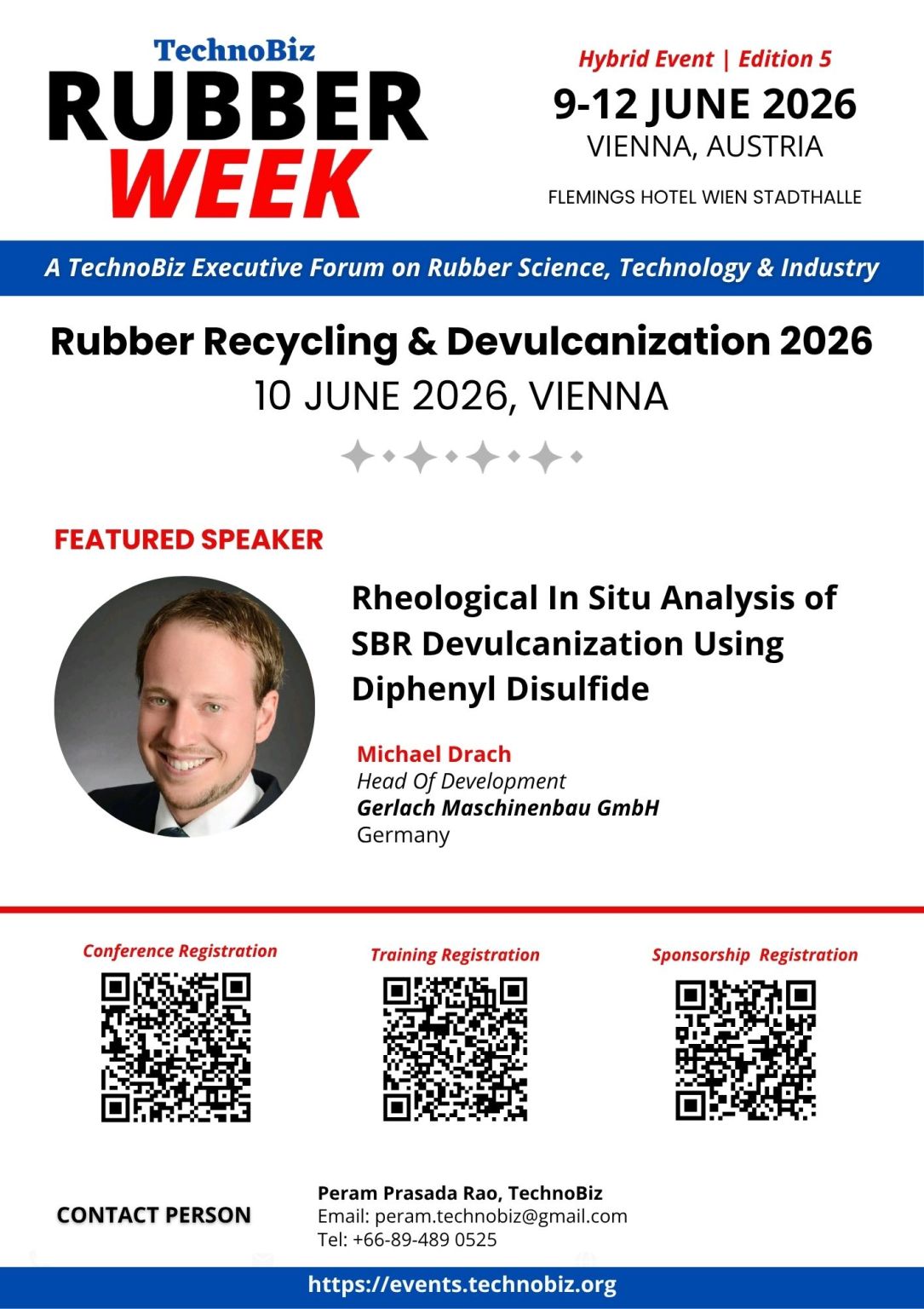 Our R&D Manager Michael Drach will be a guest speaker at the “Rubber Week 2026” in Vienna in June 2026. The event is organized by the TechnoBiz Rubber Network.
